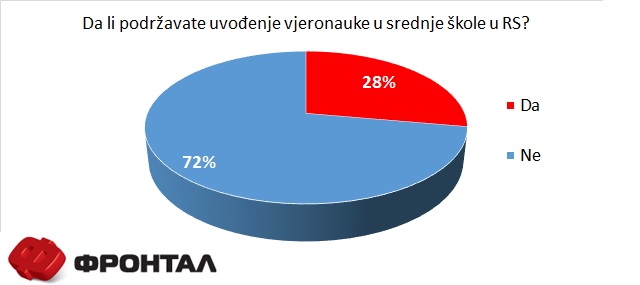Rezultati ankete: 72 odsto ne podržava uvođenje vjeronauke u srednje škole