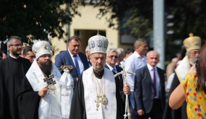 za koje je, od strane SPC nagrađen između ostalog, čašću da, iako „umirovljen“, u sred Banjaluke predvodi litiju povodom osveštanja (ovo je baš pravi hit) ruskog hrama.