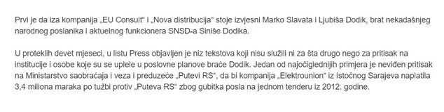 Pored „žutila“ koje su pratile ova dnevne novine, ne smijemo zaboraviti ni sve ono što se dešavalo nakon prestanka tih dnevnih novina aprila 2016. godine. Ispostavilo se tada da je vlasnik dnevnih novina, javnosti nepoznat, mada postoje indicije, ostao dužan neke pare zaposlenima i da je bilo upitno da će im te pare ikada isplatiti. Onda su novinari Pressa RS napisali jedno pismo i zaprijetili da će ga objaviti, ako im se dug ne isplati, a u pismu je pisalo da su te dnevne novine pisanjem ili ne pisanjem o nekoj temi reketirali određene kompanije i institucije u Republici Srpskoj. To pismo imam, kao i prepisku da je autentično.