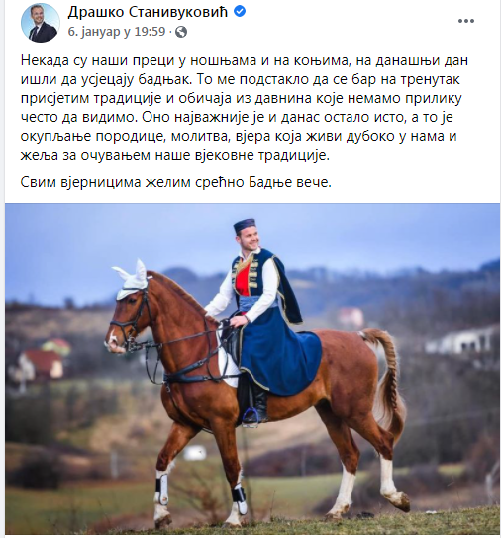 Povod za sve ovo gore napisano je objava mladog gradonačelnika Banjaluke od 6. januara, gdje nam na društvenim mrežama, želi srećno Badnje veče.