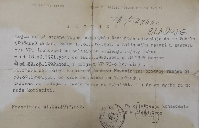 Ispostavilo se da meni to i nije bio neki veliki problem jer sam imao papir koji je dokazao da u tom periodu nisam bio u Kalinoviku, već u regionu Podveležja između Nevesinja i Mostara.