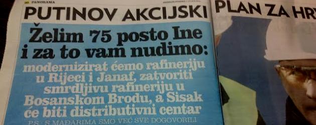 Nakon što su se ruski predsjednik Vladimir Putin i mađarski premijer Viktor Orban načelno suglasili da Rosneft, najveća ruska naftna kompanija, kupi od mađarskog Mola 49,08 posto dionica Ine, u Moskvi se navodno priprema ponudu koju će, tvrde upućeni, Zagreb teško moći odbiti. Rusi ne kriju kako imaju puno veće planove i ambicije od kupnje većinskog udjela u Ini te pripremaju paket mjera koji sadrži cijeli niz projekata koji bi, ako se realiziraju, mogli snažno utjecati na oporavak hrvatskog gospodarstva. Naftni gigant Rosneft, koji je u 75-postotnom vlasništvu države i koji je zbog toga s ruske strane određen da bude nositelj cijele operacije, nakon kupnje ukupno 75 posto dionica Ine namjerava u Sisku zatvoriti stara naftna postrojenja, koja su ionako bez ikakve perspektive, te na njihovu mjestu sagraditi golema skladišta nafte i naftnih prerađevina.