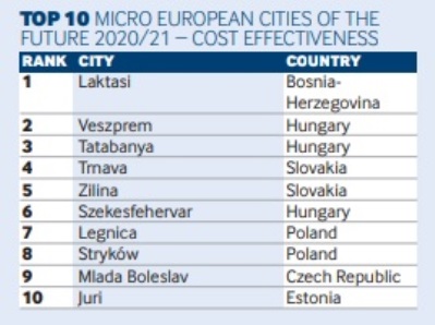 Na listi od 10 mikro evropskih gradova budućnosti za 2020/2021. godinu kada je riječ o troškovnoj efikasnosti našla se opština Laktaši.