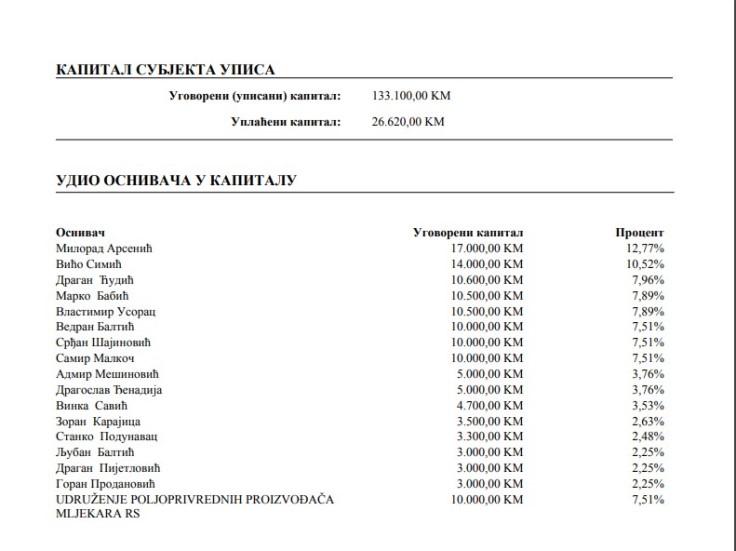 Prikupili su preko 133.000 maraka osnivačkog kapitala, a suvlasništvo je podijeljeno u procentima od 7,51 do 12,77 odsto.