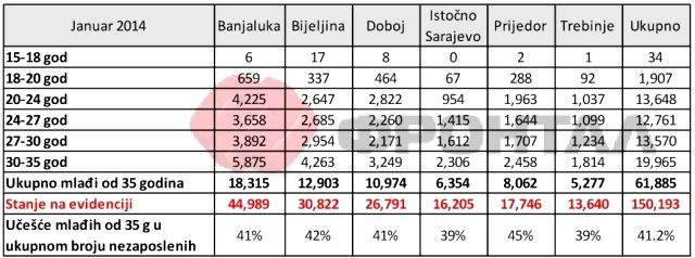 U najvećem gradu Srpske je prijavljen i najveći broj mlađih od 35 godina koji su bez posla. Njih 18,315 je više nego ukupan broj nezaposlenih u područnim jedinicama Istočno Sarajevo, Prijedor ili Trebinje.