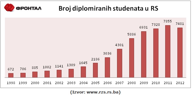 Broj apsolvanata u 2013. godini je približan broju svršnih diplomaca u proteklih pet godina jer je samo u periodu od 2006. do 2012. godine univerzitetsku diplomu steklo 42,768 studenata.