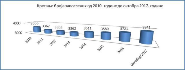 Od 2013. godine bilježi se stalan rast zaposlenih, tako da prema posljednjim podacima Poreske uprave RS, broj zaposlenih na 31.10.2017. godine iznosi 3.941 lice što je za 579 zaposlenih više nego 2013. godine kada je zabilježena najmanja zaposlenost.