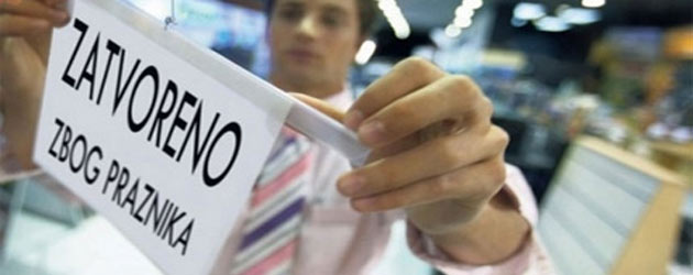 U dane praznika ne rade republički organi i organizacije, organi jedinice lokalne samouprave, preduzeća, ustanove i druge organizacije i osobe koje profesionalno obavljaju uslužne i proizvodne djelatnosti.