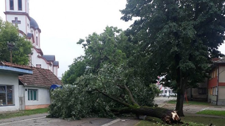 Olujni vjetar, praćen jakom kišom i gradom, juče je oko 17.00 sati poskidao crijep i polupao prozore na brojnim stambenim i poslovnim objektima, oštetio vozila i saobraćajnu signalizaciju, iščupao iz korijena na stotine stabala, pričinio štete na elektro mreži i drugoj infrastrukturi širom srbačke opštine.