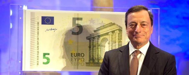Dizajn novih pet evra sa ćiriličnim tekstom predstavio je predsjednik Evropske centralne banke Mario Dragi.