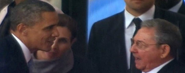 Istorijsko rukovanje: Barak Obama i Raul Kastro u Južnoj Africi na ispraćaju Nelsona Mendele.