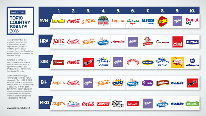 Rezultati su predstavljeni na način koji garantuje reprezentativnost, gdje snaga brenda u Sloveniji doprinosi snazi brenda u cijelom regionu upola toliko koliko doprinosi jednako snažan brend u npr. Hrvatskoj, čije je tržište dvaput veće.