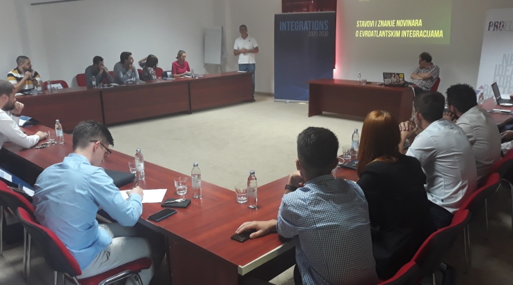 U uvodnom dijelu diskusije, dr Srđan Puhalo je predstavio rezultate istraživanja „Koliko novinari znaju o Evroatlantskim integracijama“.