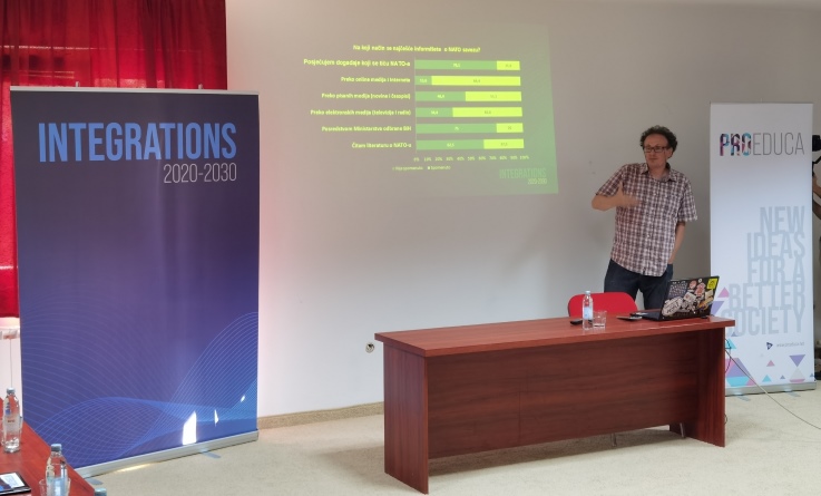 U uvodnom dijelu diskusije, dr Srđan Puhalo je predstavio rezultate istraživanja „Koliko novinari znaju o Evroatlantskim integracijama“.