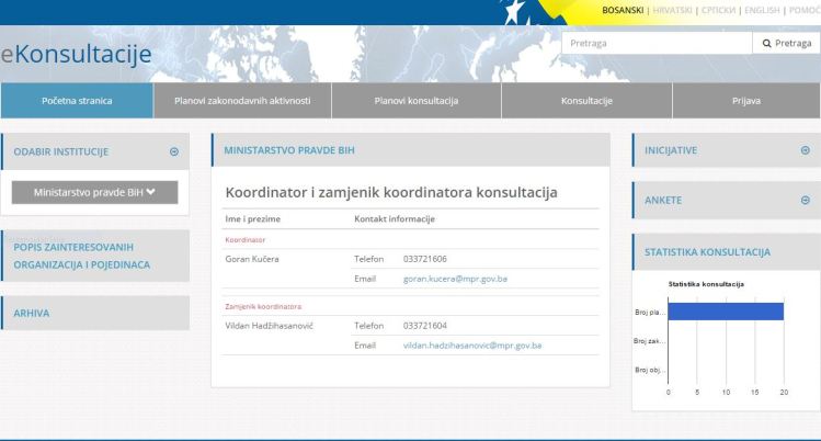 “Od početka rada aplikacije do danas građani su pokazali znatnu zainteresiranost za ovu aplikaciju. Ministarstvo pravde BiH je do sada okončalo  konsultacije za četiri zakona i jedan podzakonski akt, a za sudjelovanje u istim registrirala su se 32 korisnika. Dostavljeni prijedlozi i komentari su bili zaista korisni, što je doprinijelo tome da se u konačnici dobije kvalitetan propis”, kazao je Nezir Pivić, zamjenik Ministra pravde BiH i dodao da će u ministarstvu nastaviti medijsku promociju aplikacije, kao i dalje razvijanje u cilju ispunjavanja njene svrhe.