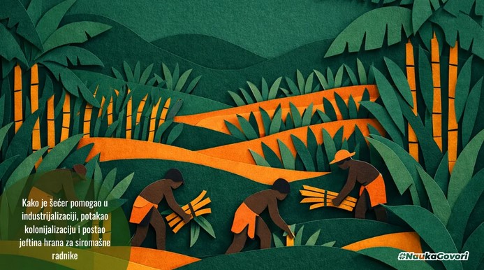 Šećer, kao prva ultraprocesirana hrana, pomogao je industrijalizaciji tako što je hranio radnu snagu (jeftina energija), stvarao kapital (profit iz kolonijalne trgovine) te razvijao industrijske procese (rafinacija i distribucija). Šećer, naravno, nije bio uzrok industrijske revolucije, ali je bio jedan od “tihih motora” koji su omogućili da sistem funkcioniše brže, jeftinije, efikasnije i u većem obimu. Pri tome efikasnost i jefinoća ovdje nisu u pozitivnom kontekstu  nego u kontekstu izrabljivanja do posljednje kapi krvi i znoja.