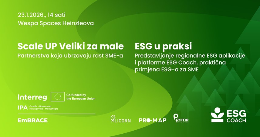 Završnica projekta održat će se 23. siječnja/januara 2026. u 14 sati, u prostoru Wespa Spaces, Heinzlova 60, Zagreb, u okviru Scale Up: Veliki za male događaja posvećenog odgovorima kako poduzetnici/e mogu rasti održivo, brže i pametnije.