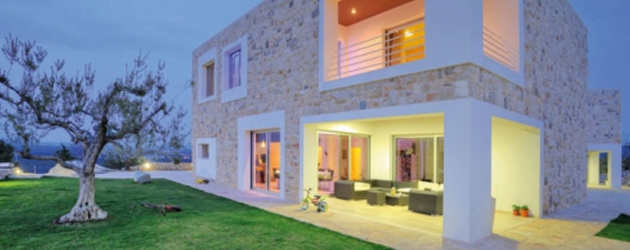 Ta glavna kuća u kojoj se u prizemlju nalazi velika natkrivena terasa, kuhinja, blagovaonica i dnevni boravak, a na spratu tri spavaće sobe i dvije kupaonice, ima ukupno oko 200 kvadrata, a uz nju na popločanom platou nalaze se još dvije kuće, jedna od 100, a druga od 70-ak kvadrata. Drugi je objekt sličnog arhitektonskog izraza, ali malo drugačijih proporcija, i to je zapravo kuća za goste, dok je u trećem skrivena garaža, podrum i roštilj s terasom za druženje.