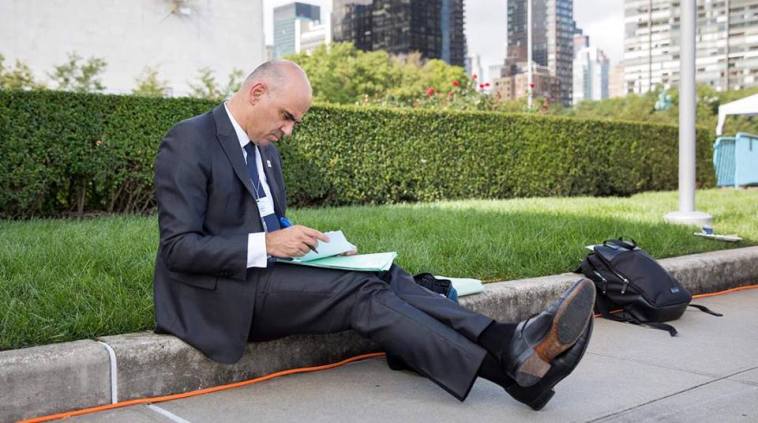 Ono što je posebno interesantno, pored toga što je premijerka Novog Zelanda Jacinda Ardern na zasjedanje došla sa svojom tromjesečnom bebom, bila je fotografija predsjednika Švajcarske Alena Berse koji je u pauzi 73. zasjedanja Generalne skupštine UN-a u Njujork pisao bilješke sjedeći na ivičnjaku.