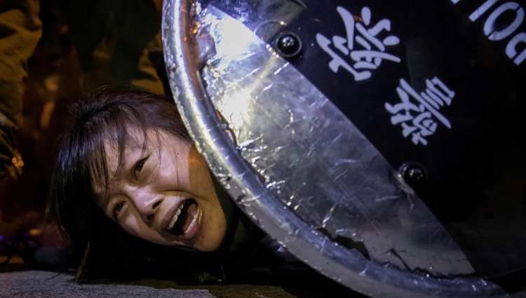Siu je napravio fotografiju žene koju su pritisli policajci štitom i uprkos tome što je mjesecima proveo na ulicama grada koji nalikuju ratnoj zoni, to mu ostaje u sjećanju.