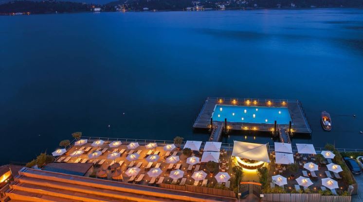 Plutajući bazen Grand Hotela Tremezzo na jezeru Como u Lombardiji često se svrstava na ljestvice najljepših mjesta za ljetno osvježenje u Evropi. To ne čudi sve one koji su posjetili ovu azurnu oazu sa zapanjujućim pogledom na planinu Grigna na sjeveru Italije.