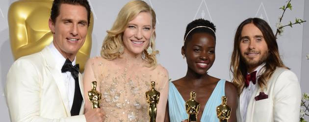 Najbolji film – "12 godina ropstva"; Najbolja muška uloga – Metju Mekonahi za "Poslovni klub Dalas"; Najbolja ženska uloga – Kejt Blančet za "Nesrećnu Džasmin"; Najbolja režija – Alfonso Kuaron za "Gravitaciju"; Najbolja sporedna muška uloga – Džared Leto za "Poslovni klub Dalas"; Najbolja sporedna ženska uloga – Lupita Njong"o za "12 godina ropstva": Najbolji adaptirani scenario – Džon Ripli "12 godina ropstva"; Najbolji originalni scenario – Spajk Džounz "Ona"; Najbolji strani film – "Velika ljepota" Paolo Sorentino; Najbolji animirani film – "Zaleđeno kraljevstvo".