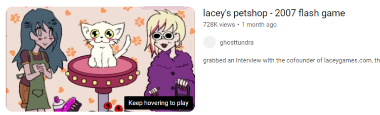 Što se tiče sadržaja video igara, Lacey's Flash Games su ljetos imale najveći broj pretraga. Slično kao Skibidi Toilet, igre Lacey's Games su prerasle u web horor priču baziranu na liku Lacey – koji se pojavljuje, na primjer, u flash igri "Lacey's Wardrobe" (ključni zaplet je postojanje ove igre u stvarnom životu). Različiti kreatori sadržaja su snimali horor priče bazirane na ovoj igri – što je doprinijelo tome da Lacey zauzme vrh liste horor likova ovog ljeta.