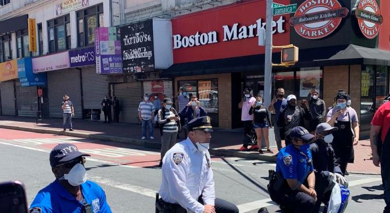 Video snimak prikazuje policajce kako kleče tokom protesta u Kvinsu pozivajući na pravdu za ubijenog Afroamerikanca Džordža Flojda i u znak protesta protiv besmislenih ubistava drugih crnaca.