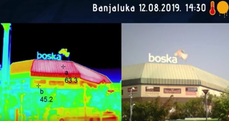 Međutim, pojedine površile su se toliko usijale da je na njima zabilježena duplo veća temperatura. To je pokazalo termovizijsko snimanje centra grada.