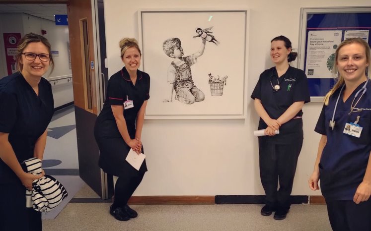 So proud to reveal this amazing piece of art Painting for Saints, created by #Banksy as a thank you to all those who work with and for the NHS and our hospital. Temporarily on display @UHSFT. An inspirational backdrop to pause and reflect in these unprecedented times. pic.twitter.com/3QIgMyrlcA