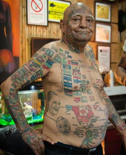 Imam tetovaže indijskog premijera, američkog predsjednika, britanske kraljice i Mahatme Gandi. Čak sam napisao pismo američkom predsjedniku da me pozove u SAD i vjerujem da će mi odgovoriti. Moram da porazgovaram sa njim o tome kako da se eliminiše terorizam. Kad ljudi vide tetovaže na mom tijelu oni ih ne cijene i misle kako sam lud, pogotovo zbog onih na mom licu – kaže vremešni rekorder.