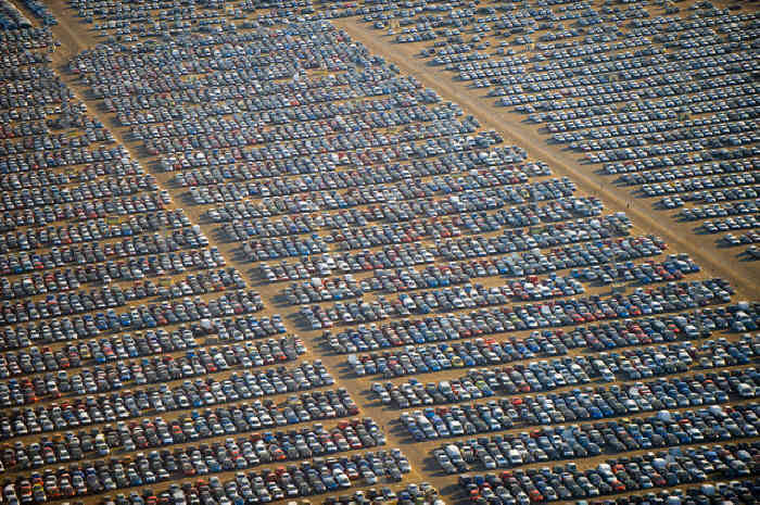 Carstvo neiskorišćenih automobila, koji uglavnom nisu prošli nijedan kilometar, svakodnevno raste, a velike auto-kompanije sve su češće primorane da kupuju zemljište za skladištenje brojnih vozila, koje prosto nema ko da kupi.