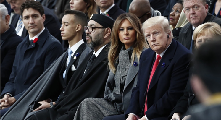Kralj je u prvom redu sjedio pored prve dame SAD Melanije Tramp, a u toku govora koji je održao domaćin, predsjednik Francuske Emanuel Makron, je zaspao.