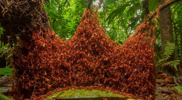 S druge strane, fotografija nazvana "Arhitektonska vojska" Daniela Kronauera iz SAD-a prikazuje koloniju crvenih mrava. U sumrak, Kronauer je pratio koloniju nomadskih vojnih mrava dok su se kretali kroz prašumu na sjeveroistoku Kostarike. Kako je pojasnio Konaur, mravi su koristili svoja tijela kako bi izgradili gnijezdo u koje će smjestiti kraljicu i ličinke.