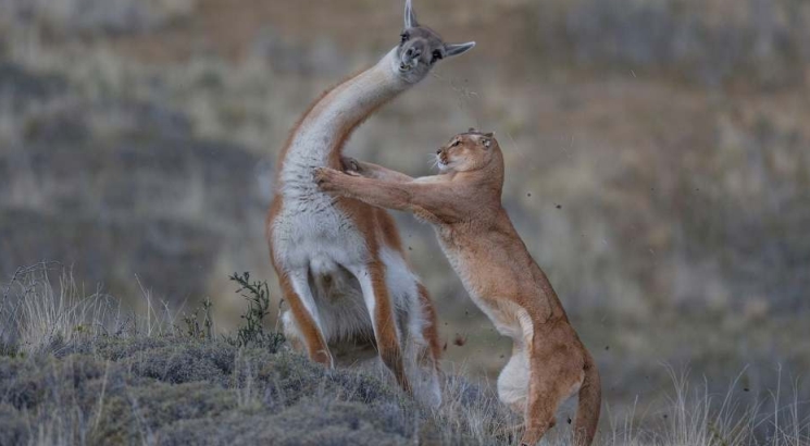 Pobjednik u kategoriji za najbolju fotografiju sisara je Ingo Arndt iz Njemačke koji je zabilježio nevjerovatan napad pume na lamu. Iza ove fotografie krije se sedam mjeseci praćenja divljih životinja na ekstremno hladnim i jakom vjetrovima u regiji Torres del Paine u Čileu.