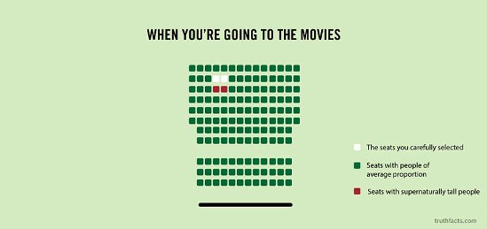 4) Kada odete u kino – Bijelom bojom su označena mjesta koja ste pažljivo odabrali, a crvenom mjesta natprirodno visokih ljudi.