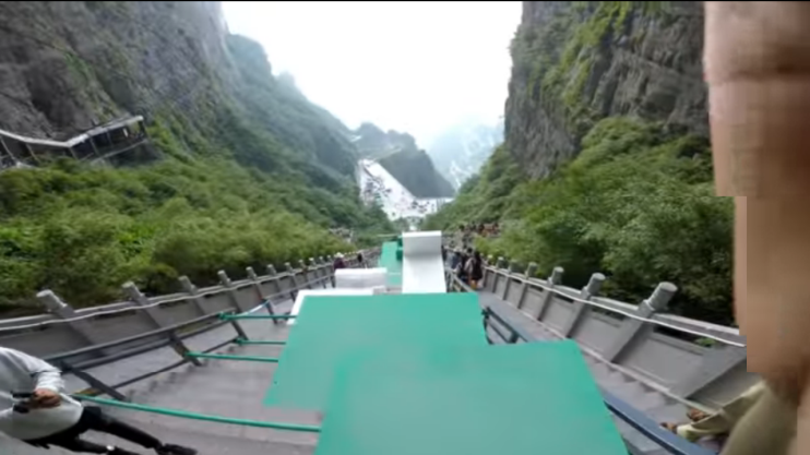 Kalen Čan se odvažio da teške prepreke "Skajlader" (Nebeske stepenice) parkur staze locirane na Tijanman planini snimi GoPro kamerom dok ih prelazi dok su okupljeni turisti uzmicali, piše "Sploid".