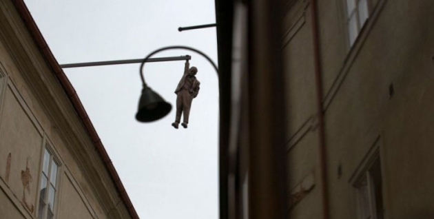 "Hanging out" je skulptura Sigmunda Frojda a djelo je umjetnika Davida Černija (David Černý), koji na provokativan način šalje poruku: "Stanje ljudi u odnosu na našu potrebu da svjesno odlučimo da živimo ili da život pustimo".