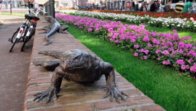 Turisti koji pješače po Amsterdamu, mogu dobiti neobično duštvo ukoliko sjednu, na ovaj zidić recimo, da odmore noge. Bronzane iguane rado će mu praviti društvo u Iguana parku.