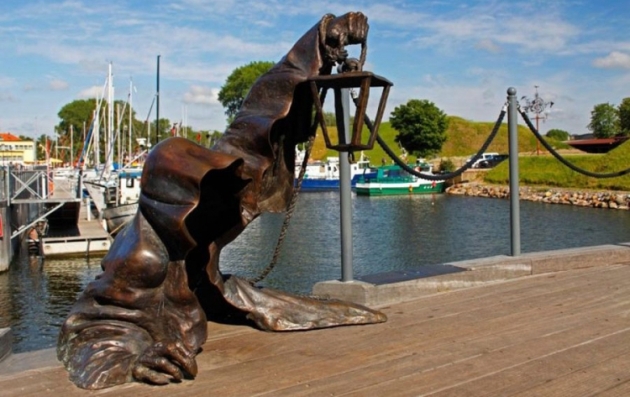 Crni duh koji sa fenjerom u ruci, ogrnut plaštom, izranja iz vode zvuči strašno. Ipak, ne bojte se, riječ je o bronzanoj skulpturi koja podsjeća na to da je Klaipeda najstariji grad u Litvaniji.
