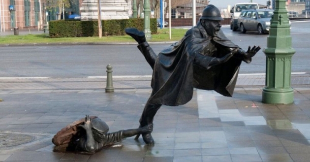Skulpturu je napravio umjetnik Tom Francen (Tom Frantzen) a Belgijanci je prosto obožavaju. Čovjek koji izlazi iz kanalizacije hvata za nogu policajca i na simboličan i jednostavan način pokazuje borbu moći.