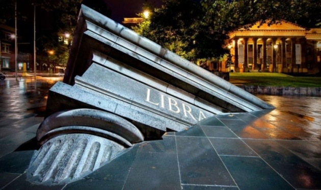 Ukoliko šetate ispred Nacionalne biblioteke u Melburnu, u Australiji, obratite pažnju i vidjećete još jednu zgradu biblioteke ali koja nažalost, tone u zemlju. Ne brinite, riječ je o skulpturi Petrusa Spornika, a turisti obožavaju da se slikaju pored nje.