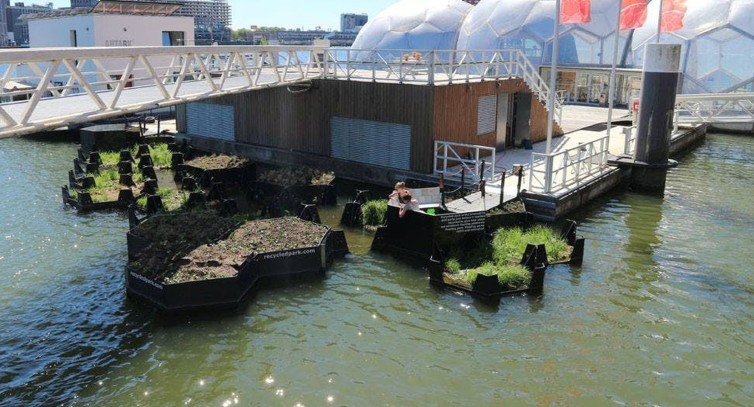 U Recikliranom parku u Roterdamu, plutajući park doprinosi ozelenjavanju grada i poboljšanju ekosistema u luci Rotterdam.