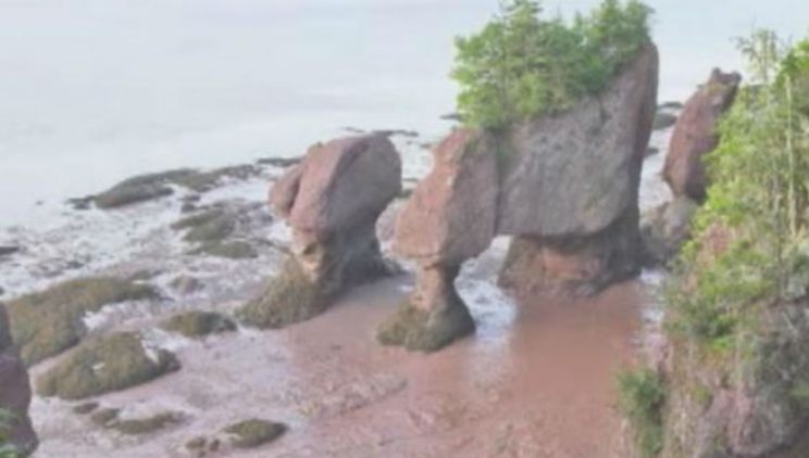 Nevjerovatan ubrzani snimak najveće plime na svijetu pokazuje kako voda poplavljuje plažu na turističkoj atrakciji Hopevel Roks u Kanadi.