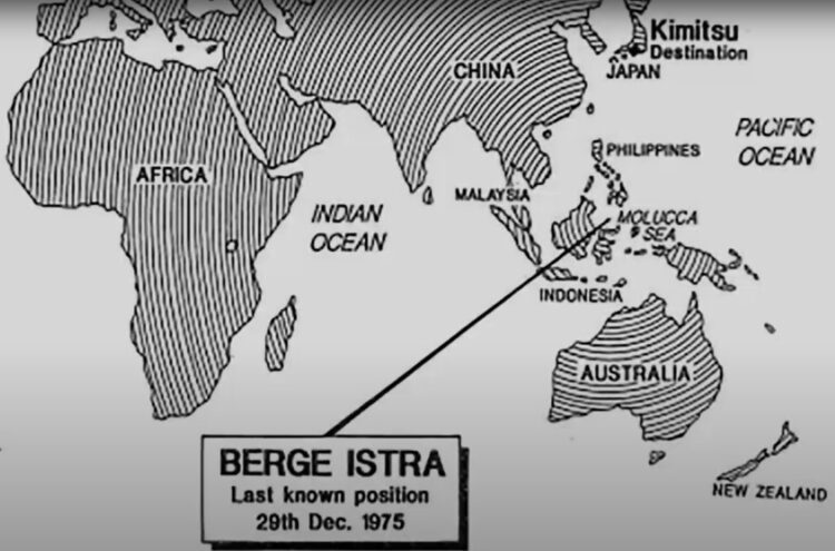 Krajem decembra, Berge Istra je bila na putu od brazilskog grada Tubarao ka Japanu, natovarena sa 188.000 tona željezne rude. Na brodu su bila 32 člana posade, od kojih su dvoje bili Jugosloveni, bračni par Egidio i Karmen Ševrlica.