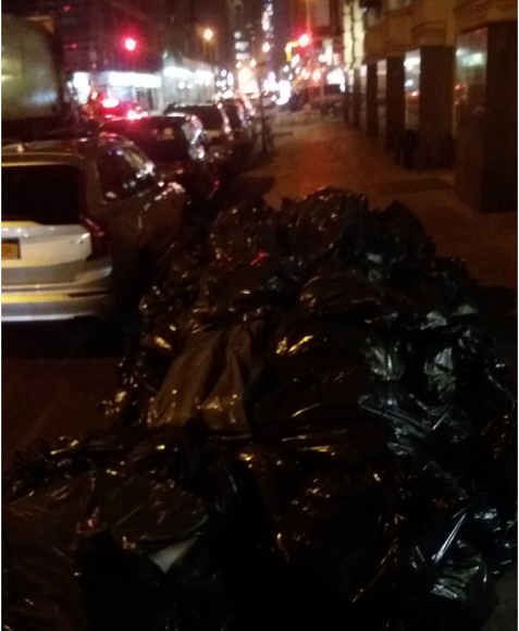 Na povratku u hotel na ulicma možete da vidite gomile smeća koje gradska čistoća treba da odveze negdje. Iako osjećate smrad i vidite brda smeća to vam je tako prirodno, tako njujorški.
