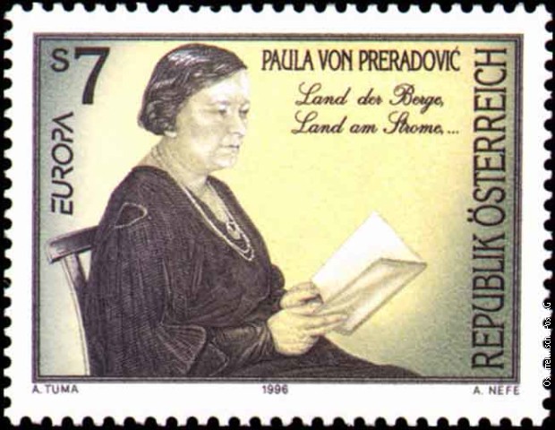 Austrijska pošta je 1996. godine izdala poštansku marku s likom Paule fon Preradović