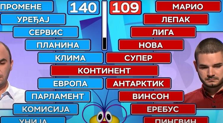 Rješenje Asocijacije bio je kontinent, što je takmičar i rekao, ali ga je voditeljka ispravila u akcentovanju. Najprije je rekla da odgovor nije tačan, a onda istu riječ izgovorila drugačije akcentovanu, istakavši da mu ipak uvažava poene.