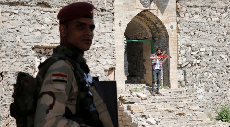 Usred ruševina na drevnom mjestu koje poštuju i muslimani i hrišćani u Mosulu, irački violinista Amin Mukdad (28) održao je mini koncert u gradu koji je morao da napusti zbog ekstremista Islamske države.