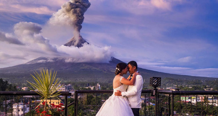 Vjenčanje u sijenci aktivnog vulkana, vjenčanica sa iskrama pepela (FOTO)